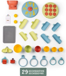 - 29 doplnkov v balení, napr. žľaby, poháriky, lopatkové kolesá, lopty, ktoré inšpirujú ku kreatívnej zábave.