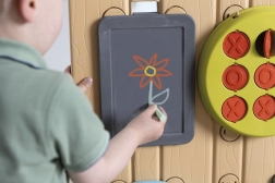 - Kreativitu – rôzne aktivity, vrátane tabule na kreslenie, podporujú tvorivú hru a vyjadrenie nápadov.