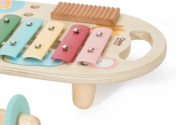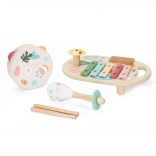 Táto súprava obsahuje päť rôznych hudobných nástrojov, ktoré skvele padnú do malých detských rúk. Každý nástroj je vyrobený z kvalitného dreva a natieraný netoxickými farbami, ktoré sú bezpečné pre deti aj životné prostredie.
