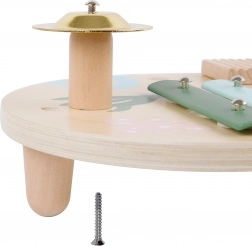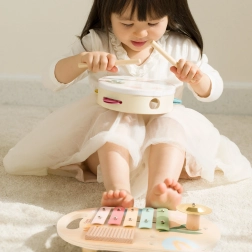 Súprava obsahuje päť nástrojov: činely, rumba gule, bubon a dve paličky – ideálne pre objavovanie hudby.