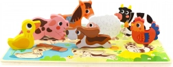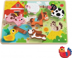 Objavte prvú skladačku, ktorá deti hravou formou učí spoznávať zvieratká z farmy. Pevné 3D dieliky sa skvele držia v malých rúčkach a presne zapadajú do výrezov v doske. Puzzle podporuje jemnú motoriku, logické myslenie a vizuálne vnímanie, takže je ideálne na prvé montessori aktivity.