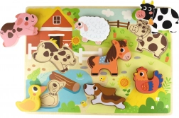 3D dieliky so zvieratkami presne zapadajú do výrezov a učia deti rozlišovať tvary a motívy z farmy, pričom rozvíjajú koordináciu oko‑ruka.