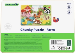 Farebné drevené vkladacie puzzle so zvieratkami z farmy od TOOKY TOY poteší deti od 12 mesiacov. Obsahuje 8 ľahko uchopiteľných 3D dielikov, rozvíja jemnú motoriku, koordináciu oko‑ruka aj poznávanie tvarov a zvierat. Vyrobené z kvalitného dreva a lakované bezpečnými, netoxickými farbami.