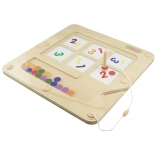 Táto kvalitná drevená tabuľa MASTERKIDZ s magnetickým bludiskom učí deti čísla, množstvá a farby prirodzenou hrou. Pomocou priloženej magnetickej ceruzky deti presúvajú guličky/žetóny do správnych pozícií podľa čísel a farieb, čím si rozvíjajú koordináciu oko–ruka, koncentráciu a trpezlivosť.