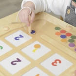 Farebné žetóny sa pomocou magnetickej ceruzky presúvajú do správnych čísel a sekcií – bez neporiadku a strácania dielikov.