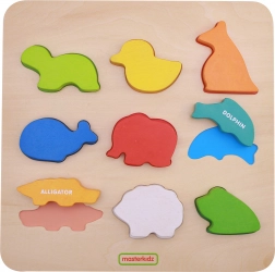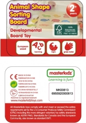 Objavte šikovnú drevenú hračku pre predškolákov – triediacu dosku so zvieratkami od MASTERKIDZ. Farebné drevené dieliky v tvare zvierat učia deti rozpoznávať tvary a farby, zároveň podporujú jemnú motoriku, logické myslenie a prvé slovíčka v angličtine vďaka popisom na jednotlivých dielikoch.