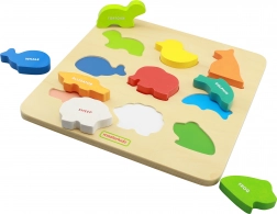 Táto robustná drevená tabuľa ponúka vyrezané tvary, do ktorých deti vkladajú zodpovedajúce zvieratká. Pri hre precvičujú koordináciu oko–ruka, sústredenie aj priestorové vnímanie. Každý dielik je jasne farebný a prehľadný, čo uľahčuje učenie a zvyšuje radosť z hry.