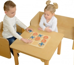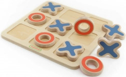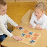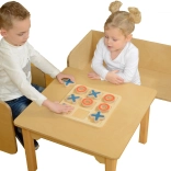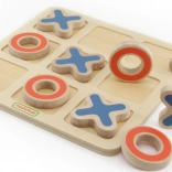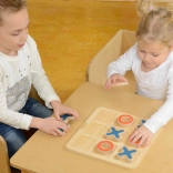 Masívna drevená doska a veľké dieliky X a O sú odolné, stabilné a príjemné na dotyk – ideálne pre detské ruky.
