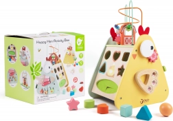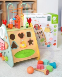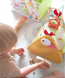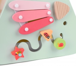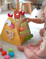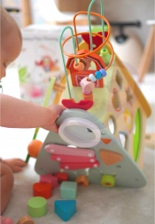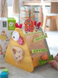Xylofón, labyrint, korálky, ozubené kolieska, sorter a ďalšie múdre prvky udržia pozornosť detí na dlhé hodiny a podporujú učenie hrou.