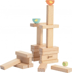Ukladanie blokov a vyvažovanie vtáčikov trénuje jemnú motoriku, koordináciu oko–ruka a logické myslenie zábavnou formou.