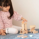 Kvalitné bukové drevo, hladké hrany a netoxické povrchové úpravy zabezpečujú bezpečnú a príjemnú hru pre deti od 3 rokov.