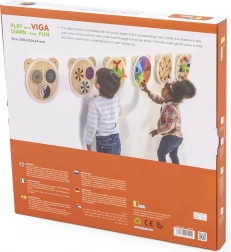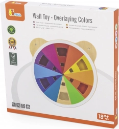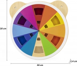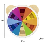 Drevená tabuľka na miešanie farieb v tvare medvedej hlavy je nielen esteticky atraktívna, ale aj vzdelávacia pomôcka pre deti od 18 mesiacov. Vďaka otáčaniu akrylového disku môžu deti miešať farby a objavovať nové. Každá rotácia vyústi do jedinečných farieb, ktoré deti fascinujú.