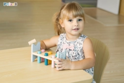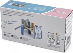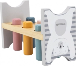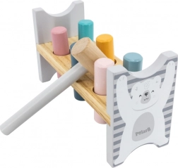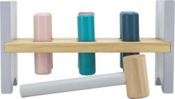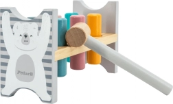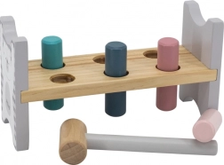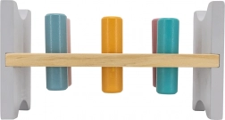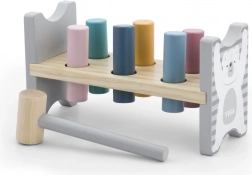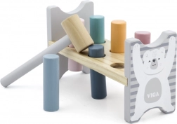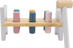 Farebná drevená lavička od značky VIGA je navrhnutá tak, aby zaujala a rozvíjala koordináciu detí. Hlavným úlohou je zatĺkať jednotlivé kolíky cez otvory, čo deti baví a zároveň trénuje ich motorické schopnosti.