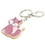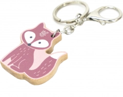 Drevený prívesok má motív líšky v jemných ružových a bielych farbách, čo z neho robí kúzelný doplnok vašich kľúčov.