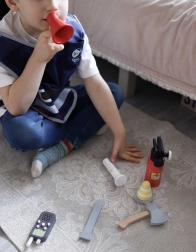Set obsahuje všetky potrebné nástroje, ako je hasiaci prístroj, sekera, megafón a ďalšie, ktoré prinášajú mnoho hodín zábavy a učenia.