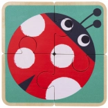 - 6 v 1 (puzzle 4 diely, ťahací psík, navliekacie koráliky s vrecúškom, aktívny trojuholník – sorter/labyrint/ozubené kolieska/počítadlo, otáčacie kocky s obrázkami, obrázková knižka)