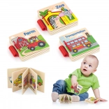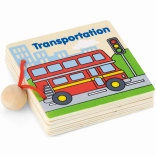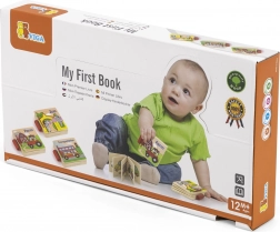 Moja prvá drevená knižka VIGA podporuje rané učenie hravou formou. Odolné drevené strany s farebnými ilustráciami a anglickými popismi pomáhajú deťom spoznávať farby, zvieratá a dopravné prostriedky. Knižka je spojená pevnou červenou šnúrkou pre ľahké listovanie malými ručičkami.
