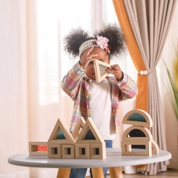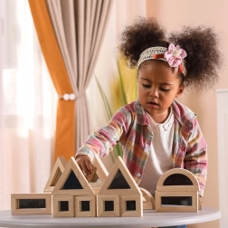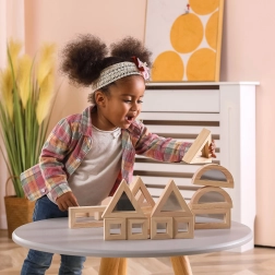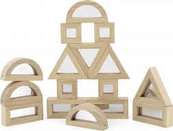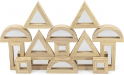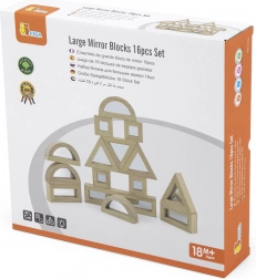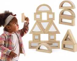 Rozšírte detskú fantáziu s kvalitnými drevenými kockami so zrkadlovými plochami. Sada obsahuje 16 dielov v štyroch tvaroch – obdĺžnik, štvorec, rovnostranný trojuholník a polkruh – ktoré sa skvele skladajú a stavajú. Zrkadlový efekt prirodzene podporuje sebauvedomenie a zmyslové vnímanie pri hre.