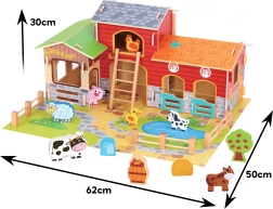 Postavte si doma vlastné hospodárstvo! Drevená mega farma WOOPIE GREEN deti zavedie do sveta prírody, kde sa naučia starať o zvieratá a objavovať každodenný život na vidieku. Realistické budovy (stajňa, stodola a kurín), jazierko a detailné figúrky podporujú kreatívne rozprávanie príbehov a rolovú hru.