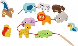 - 12 drevených korálikov so zvieratkami safari + šnúrka na navliekanie