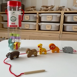 - Edukátivna zábava: navliekanie, triedenie, pomenovávanie zvierat.