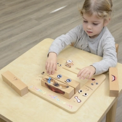 Objavte, ako deťom hravo rozvíjať emocionálnu inteligenciu a komunikačné zručnosti. Drevená montessori tabuľa MASTERKIDZ umožňuje skladať až 64 rôznych výrazov tváre pomocou 4 kociek, učí rozpoznávať radosť, smútok, strach aj hnev a podporuje pochopenie emócií cez dotyk a hru.
