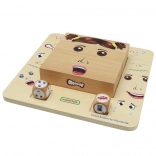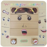 Štyri drevené bloky umožňujú deťom skladať až 64 rôznych mimík, ktoré názorne ukazujú radosť, smútok, strach či hnev a učia, ako výraz tváre mení význam emócií.