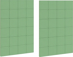 Dva zelené panely s hustou sieťou otvorov ideálne na pixel‑art a mozaiky z kolíkov – rozvoj kreativity a jemnej motoriky.