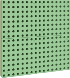 Štyri navzájom prepojiteľné štvorcové panely vytvárajú stabilný základ pre ďalšie doplnky – ozubené kolieska, skrutky, šnúrky aj potrubné systémy.