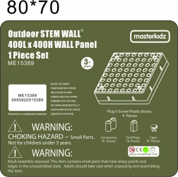 Vonkajšia vzdelávacia tabuľa MASTERKIDZ prináša nekonečné možnosti hry a učenia. Deti môžu tvoriť farebné mozaiky, stavať mechanizmy s ozubenými kolieskami alebo experimentovať s vodnými a guľôčkovými dráhami. Perforované panely sú kompatibilné so širokou škálou príslušenstva (kolíky, skrutky, šnúrky, tvary, písmená a číslice, pumpy, trubky a pod.).