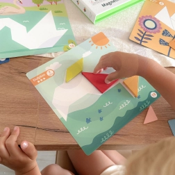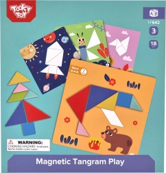 S magnetickým tangramom TOOKY TOY deti ľahko skladajú tvary a obrázky na pripravených podkladoch. Farebné geometrické dieliky priľnú k podložke, takže sa s nimi pohodlne manipuluje doma aj na cestách. Hra podporuje predstavivosť, sústredenie a samostatné riešenie úloh.