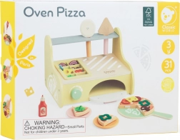 Drevená pizza pec CLASSIC WORLD je kreatívna hračka pre deti od 3 rokov, ktorá rozvíja jemnú motoriku a predstavivosť. Súčasťou je „rúra“ na pečenie, pizza so snimateľnými plstenými ingredienciami, otočný ovládací gombík, tanieriky a príslušenstvo na servírovanie. Deti si pri hre na kuchára precvičia role-play, koordináciu rúk a očí a objavia radosť z tvorivej prípravy pizze.