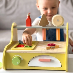 Malá drevená rúra s dvierkami a otočným gombíkom vtiahne deti do hry na varenie. Ideálna na prvé „pečenie“ a servírovanie pizze.