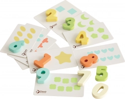 Farebné číslice a tematické kartičky učia deti odlišovať čísla, chápať množstvo a spájať symbol s počtom – zábavne a intuitívne.