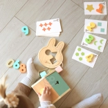Roztomilá doska v tvare zajačika s drevenými korálikmi a šnúrkou rozvíja trpezlivosť, sústredenie a precízny úchop malých prstíkov.