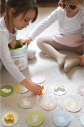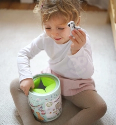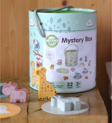 Pri hre Tajomná Krabička deti vyberajú jednu z 15 kariet a pomocou dotyku hádajú, ktorá figúrka sa skrýva v krabičke – pritom sa učia rozpoznávať jej tvar. Hra rozvíja hmatový zmysel, jemnú motoriku a sústredenie. Súprava umožňuje rôzne kreatívne spôsoby hrania, ako je párovanie, učenie sa farieb, názvy zvierat a stavanie veží.