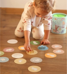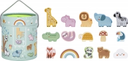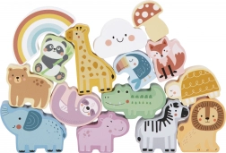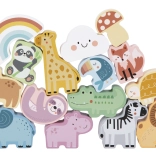 Obsahuje 15 drevených figúrok, vrátane zvieratiek, dúhy, obláčika a huby na rôznorodú a vzdelávaciu hru.
