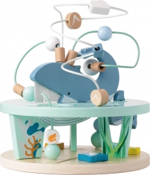 Drevený labyrint Morský svet je skvelou senzorickou hračkou, ktorá rozvíja jemnú motoriku a koordináciu ruka-oko. Pohyblivé časti a farby oslovia každé dieťa, ktoré si môže premiestňovať guľôčky po zakrivených drôtikoch a trénovať presnosť pohybov. Táto hračka nielenže zabaví, ale aj pomáha v rozvoji riešenia problémov a zručnosti.