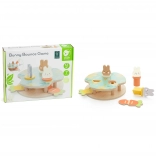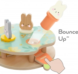 Hra Skákajúce Králiky je skvelá pre rozvoj detskej farebnej a tvarovej rozlišovacej schopnosti. Vašou úlohou je umiestniť tri roztomilé králiky do zodpovedajúcich otvorov a priradiť ich podľa farby a tvaru. Keď stlačíte kúsky mrkvy, králiky vyskočia! Hračka je vyrobená z vysokokvalitného dreva a nemá žiadne ostré hrany, takže je bezpečná pre deti.