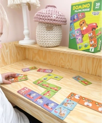 Produkt obsahuje 28 dielikov domino kariet s ilustráciami zvierat, ktoré je potrebné správne spárovať.