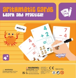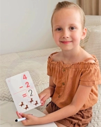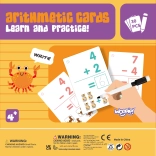 Set bol navrhnutý tak, aby dieťa mohlo opakovaně trénovať počítanie vďaka priloženému stierateľnému fixu. Karty sú rozdelené na tie s odčítaním a pričítaním. Pre uľahčenie učenia karty obsahujú dve úrovne - začať možno so stranou, kde matematické úlohy doplňujú obrázky, ktoré môžu dieťaťu pomôcť pri výpočte výsledku. Druhá strana kariet ponúka výpočty bez pomoci obrázkov. Vďaka tomuto učebnému modelu vaše dieťa nepocíti tlak obtiažnosti novej látky, a riešenie matematických príkladov bude čistá radosť! Pre motiváciu vášho dieťaťa k štúdiu možno po každom správne riešenom príklade nakresliť do rohu karty srdiečko.