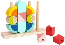 Hladké drevené prvky v pastelových farbách sú príjemné na dotyk a bezpečné pre malé ruky. Ideálne od 2 rokov.