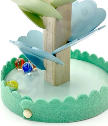 Každý dopad guľôčky na farebný „lístok“ vytvorí jemný zvuk pripomínajúci cimbal. Deti tak spájajú vizuálne podnety s hudobnými a rozvíjajú zmyslové vnímanie.