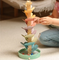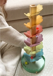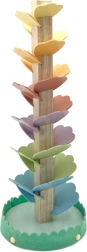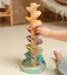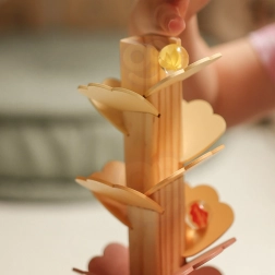 Drevené hudobné stromček, známe ako guľôčkový strom, premení každé spustenie guľôčky na upokojujúci koncert. Pestrofarebné „lístky“ tvoria dráhu, po ktorej guľôčky putujú nadol a pri každom dotyku vytvárajú príjemné, jemné tóny. Hračka podporuje sústredenie, trpezlivosť a prirodzenú zvedavosť.