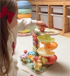- Kulodrom – Pozorovanie loptičiek kotúľajúcich sa po kaskádovitých úrovniach učí sústredenie, sledovanie pohybu a poskytuje veľa zábavy