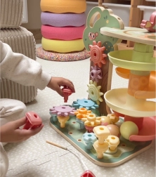 - Ozubené kolesá – Otáčanie a posúvanie kolies prináša dotykové vnemy, učí mechanike a podporuje senzorický rozvoj