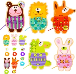 Drevené šnurovacie zvieratká 5v1 od značky Woopie Green ponúkajú skvelú kombináciu zábavy a vzdelávania pre deti. Tieto farebné, drevené zvieratká s otvormi na navliekanie podporujú rozvoj jemnej motoriky a koordináciu ruka-oko.