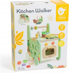 Drevená kuchynka a chodítko Classic World kombinuje funkčnosť chodítka s možnosťami hry v kuchyni. Ide o multifunkčnú hračku pre deti od 12 mesiacov, ktorá podporuje učenie a rozvoj na rôznych úrovniach:
