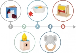 Vzdelávací box Tooky Toy pre 5-6 mesačné deti je ideálnym darčekom pre malé novorodencov. Set obsahuje:
