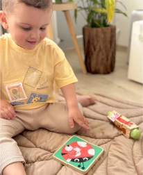 - Obojstranné puzzle – voľná kompozícia + motív lienky pre riešenie problémov a presnosť pohybov.